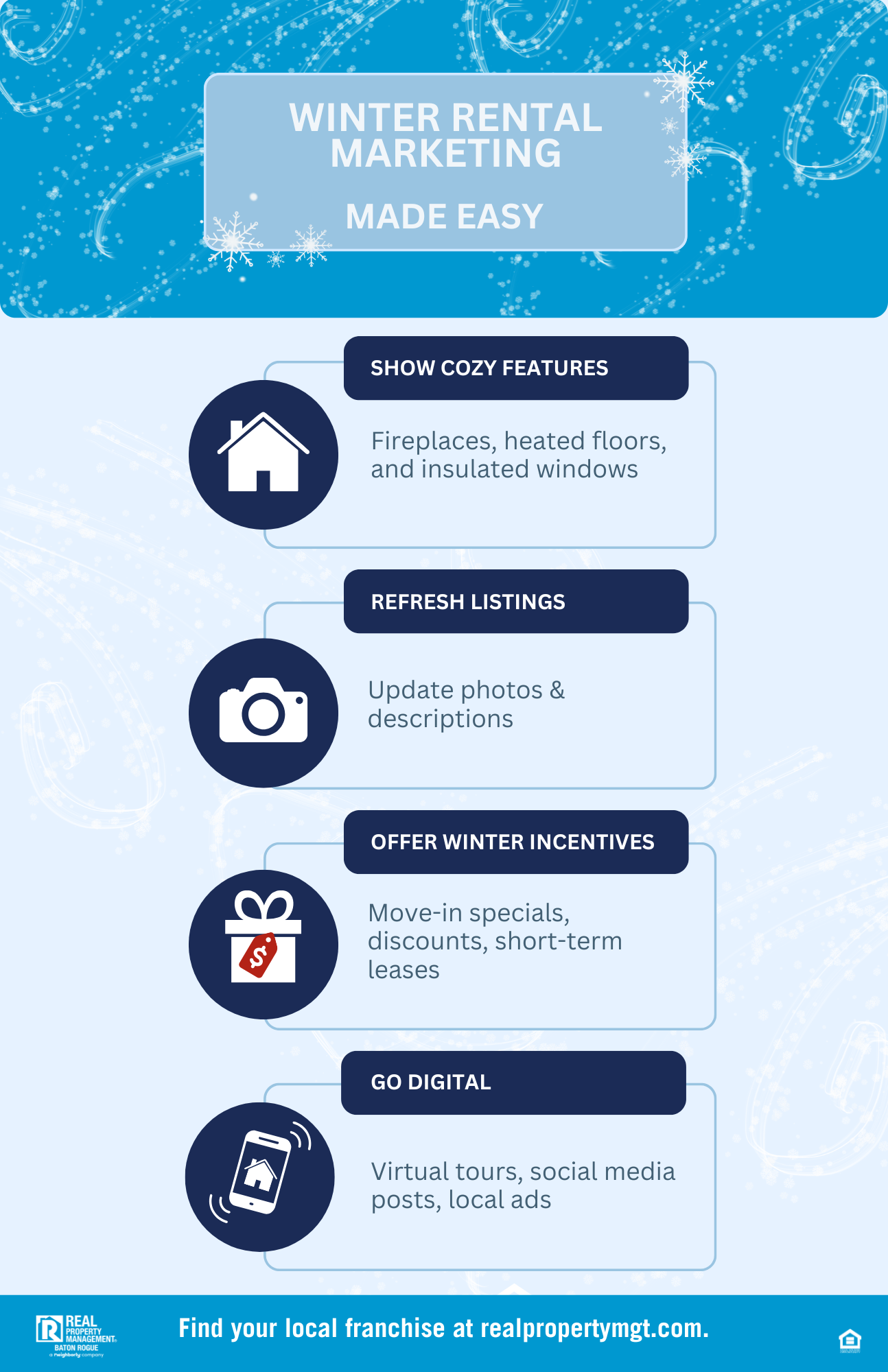 Need help keeping your properties filled this winter? Contact Real Property Management Baton Rouge today to learn how our expert property management services can maximize your occupancy year-round.